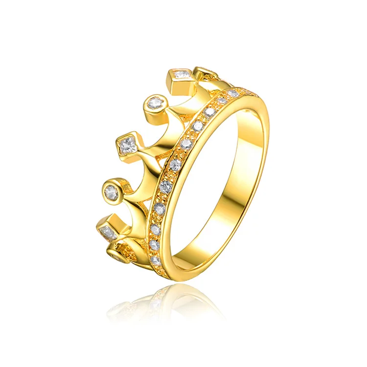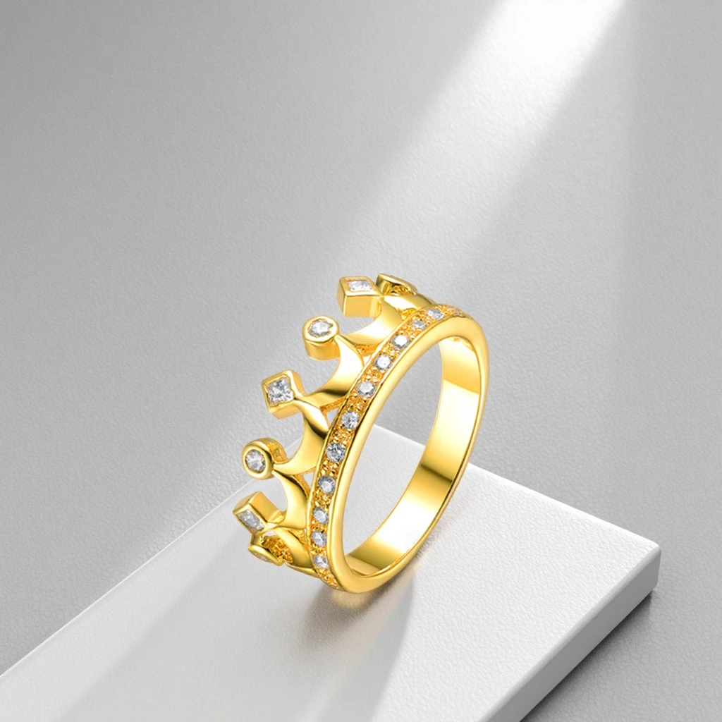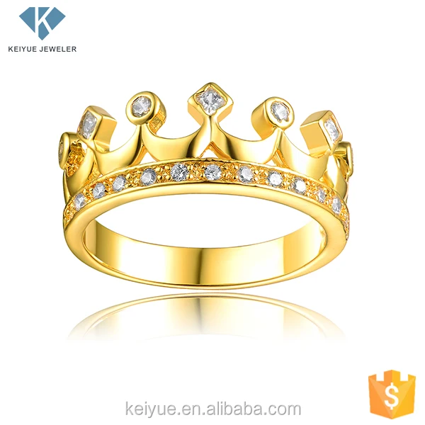 Keiyue Classic Dubai King Princess Crown Sterling Silver Gold Plated Zircon Ring for Wedding & Party-Lord of the Rings Design